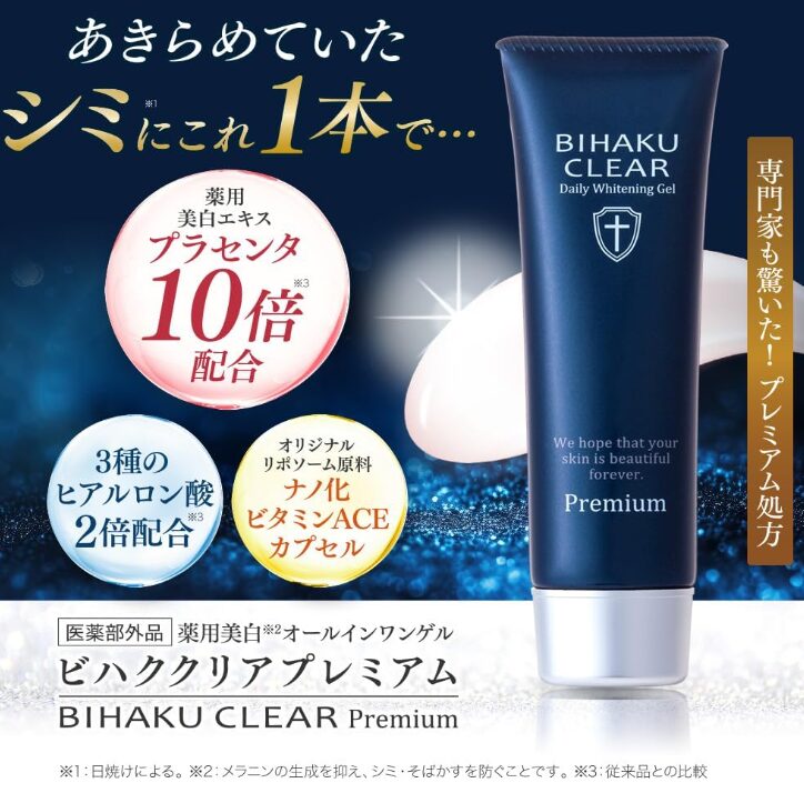 ビハククリア美白クリームは、薬用有効成分を配合した美白オールインワンゲルです。