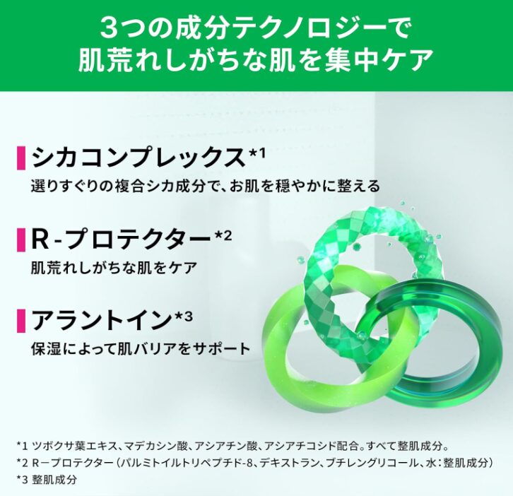 - シカ(ツボクサエキス)配合で肌荒れ・赤みを集中ケア