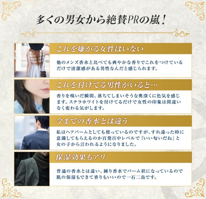 「インフィニットワン ステラホワイト 練り香水」は、男性の魅力を最大限に引き出す“モテ香り”練り香水。