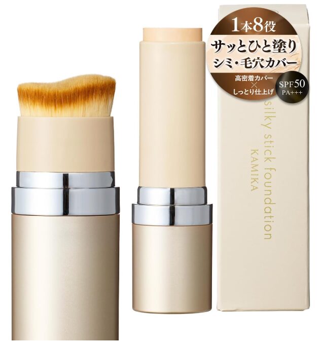 KAMIKA シルキー スティックファンデーションは、1本でベースメイクが完成するオールインワンタイプのファンデーションです。