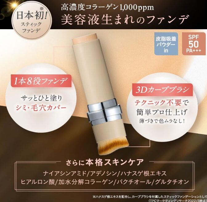 このように1本でベースメイクが完成する設計になっており、忙しい朝や外出先でのメイク直しにも便利です。